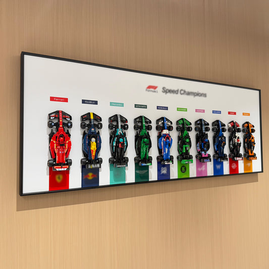 Specifically designed for the LEGO Speed Champions F1 Collector's Pack, this sleek wall mount is perfect for adult collectors and transforms your builds into a professional-style exhibit. It delivers a gallery-quality effect, ideal for home, office, or collector rooms. This wallboard set includes 10 individual mounts, providing a complete solution to showcase your entire F1 collection.